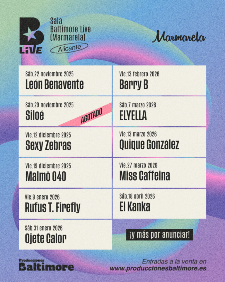 Baltimore Live es un ciclo de conciertos que trae a la Sala Marmarela (Alicante) a algunos de los artistas más importantes del panorama nacional.